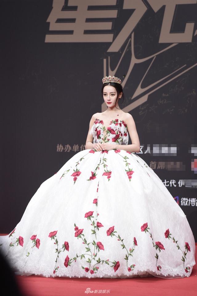 组图:是公主吧!迪丽热巴玫瑰刺绣拖尾白纱裙 高贵冷艳气质非凡