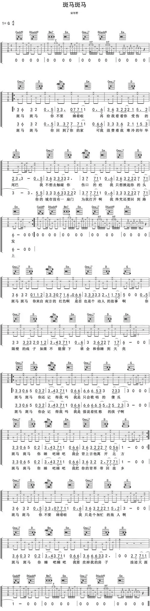 宋冬野《斑马斑马》吉他谱_g调指法_老姚吉他视频弹唱教学版.jpg