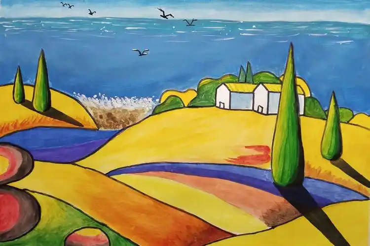 简单的儿童插画美术作品,优秀的色彩儿童画