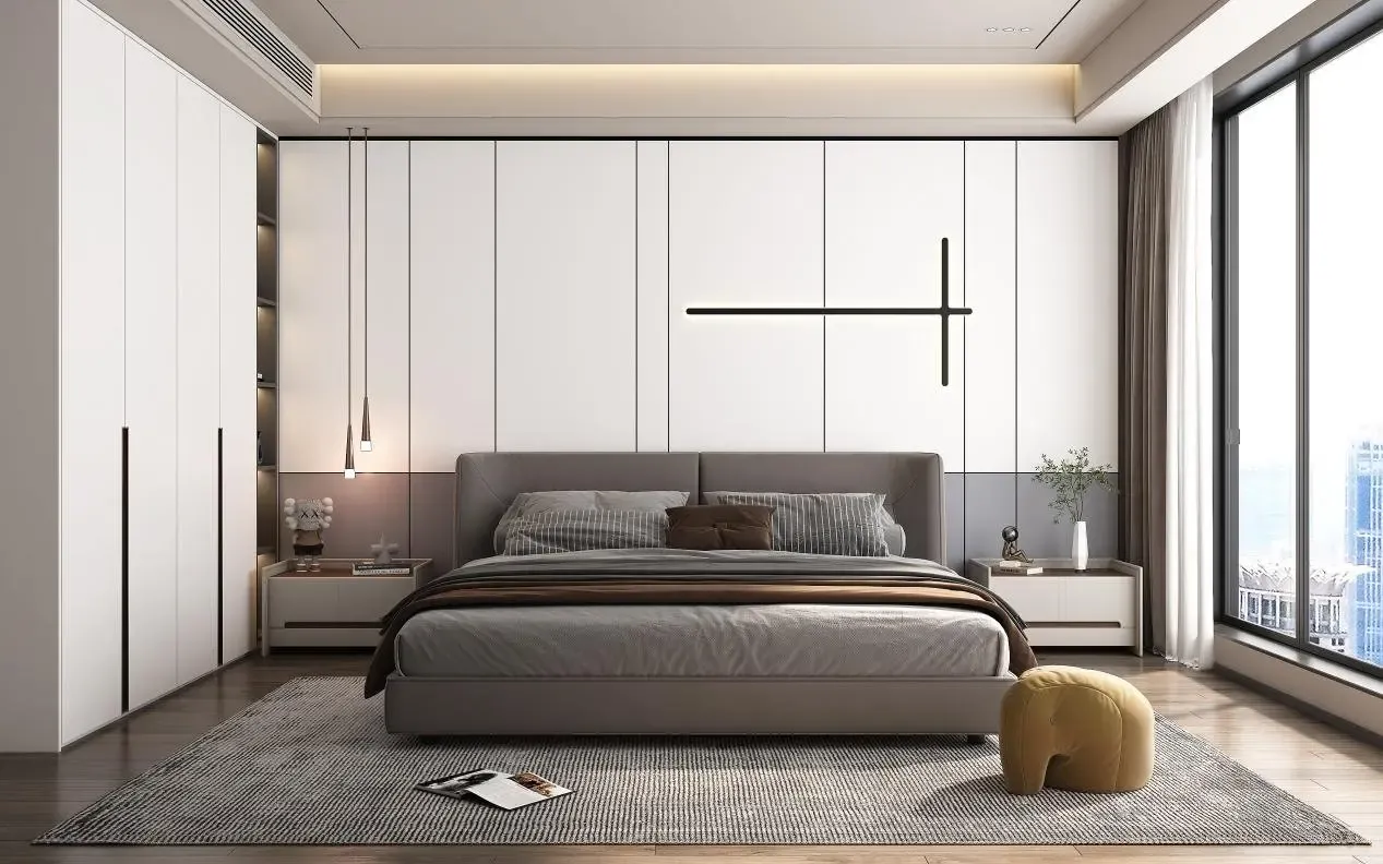 现代卧室 床头背景墙 衣柜