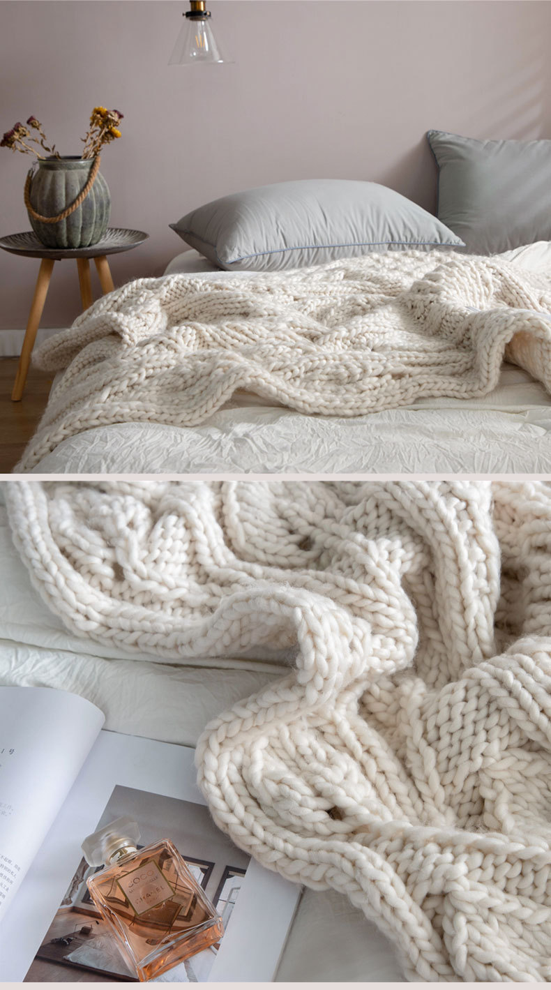 北欧粗毛线手工编织毯毛毯针织毯毛线毯子沙发盖毯粗线毯子 办公室