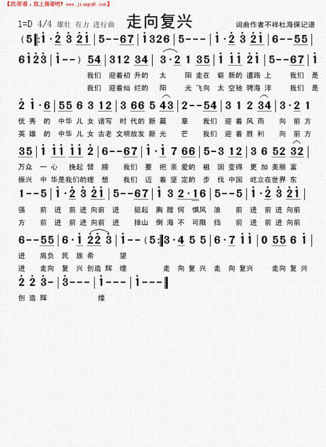走向复兴简谱《走向复兴》这首歌恢弘大气的歌词配合进行曲的谱曲方式