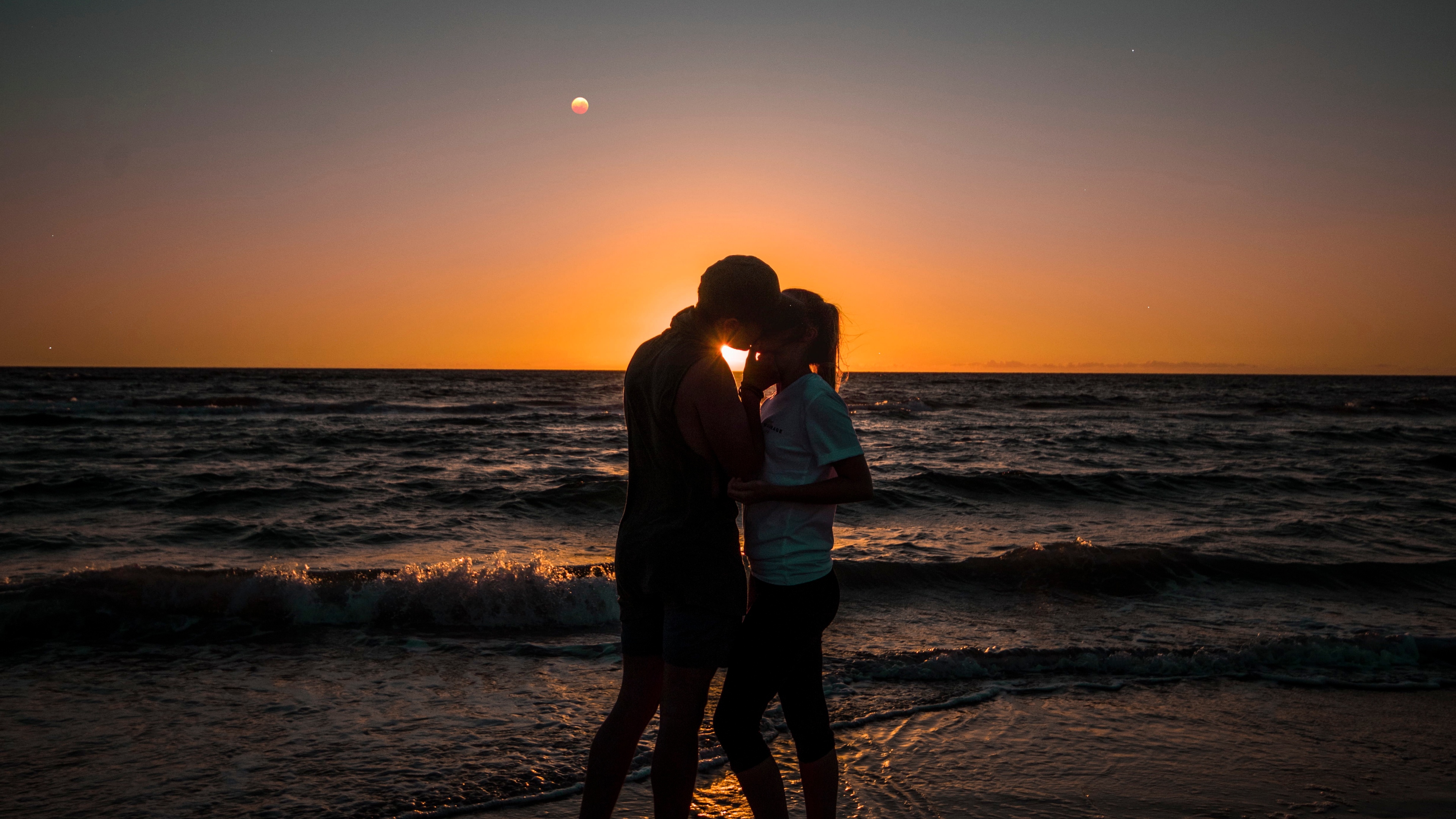 黄昏海边浪漫情侣图片高清原图查看