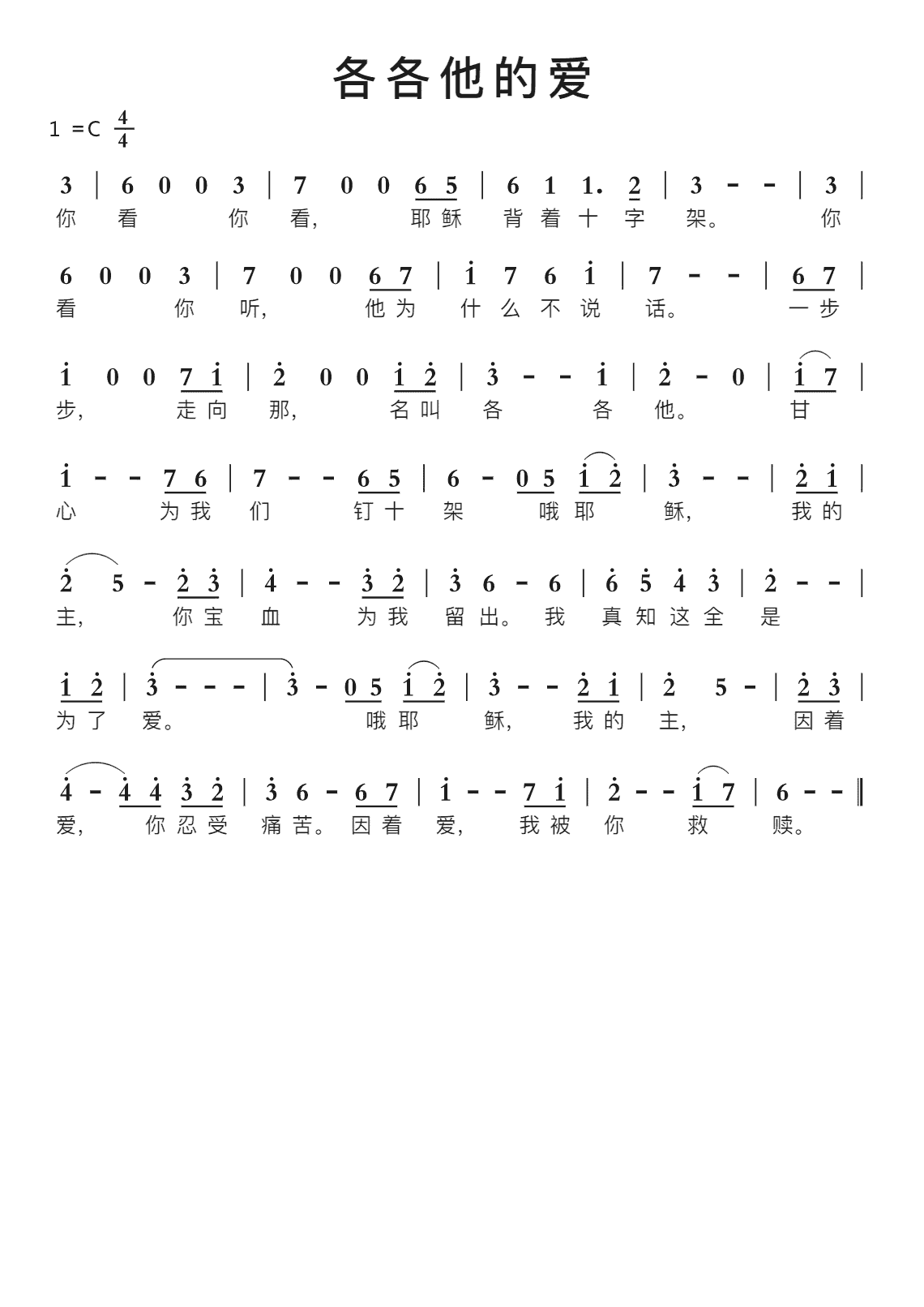 各各他的爱 歌谱 恩泉佳音续集 一 赞美诗网原创音乐曲谱 是否因爱爱