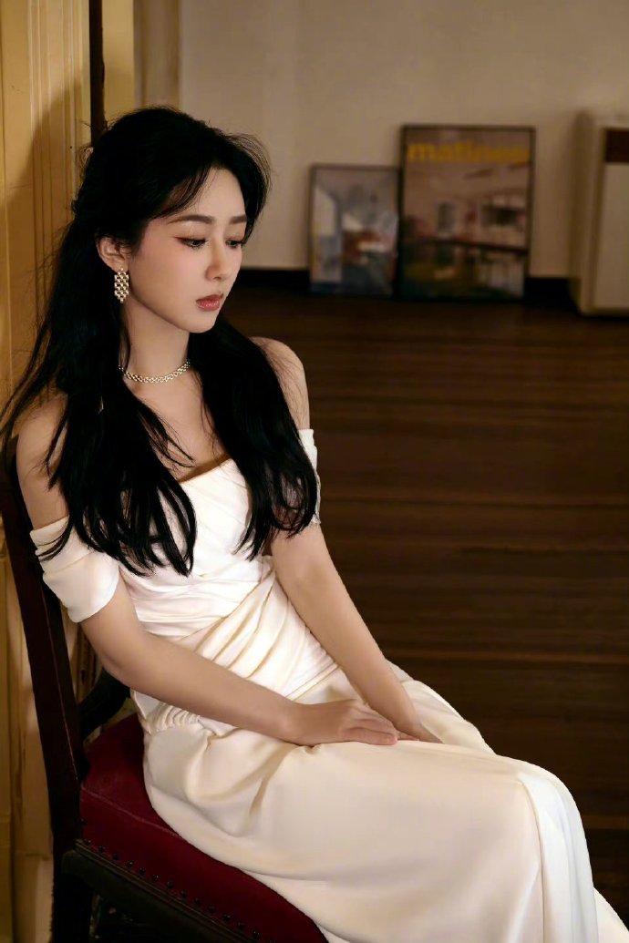 杨紫一字肩白裙##杨紫银色高跟鞋