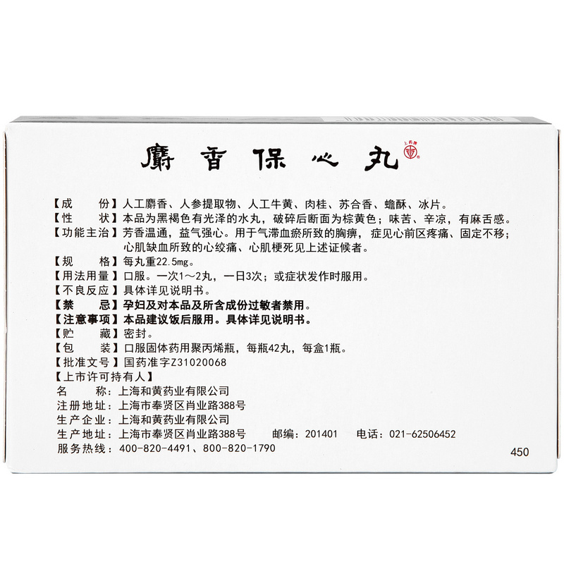 上药牌 麝香保心丸 22.
