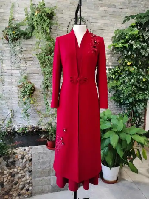 喜婆婆婚宴装套装裙两件套红色喜庆连衣裙婚礼妈妈礼服女一件代发