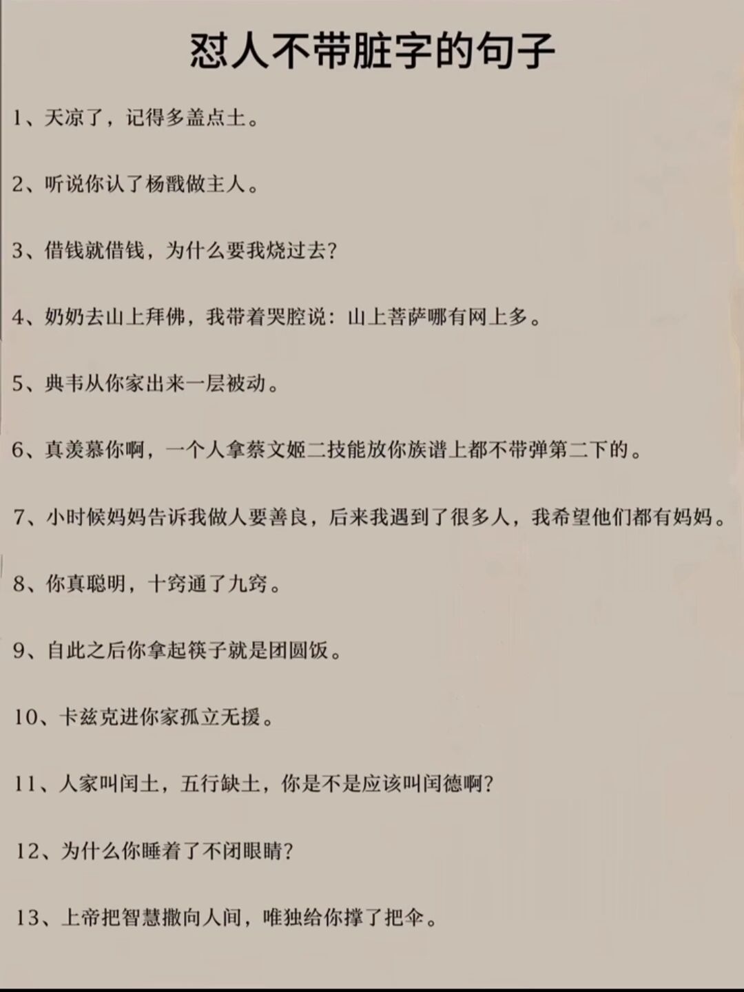 霸气怼人不带脏字第二弹怼人也有怼人的方法,一味带脏字就显得没素质