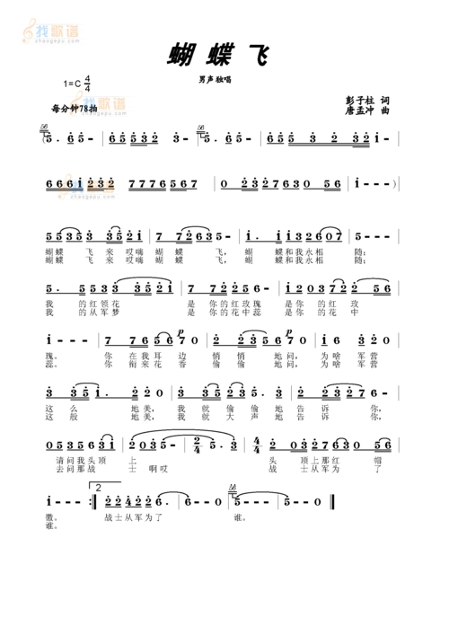蝴蝶飞_蝴蝶飞简谱_蝴蝶飞吉他谱_钢琴谱-查字典简谱网