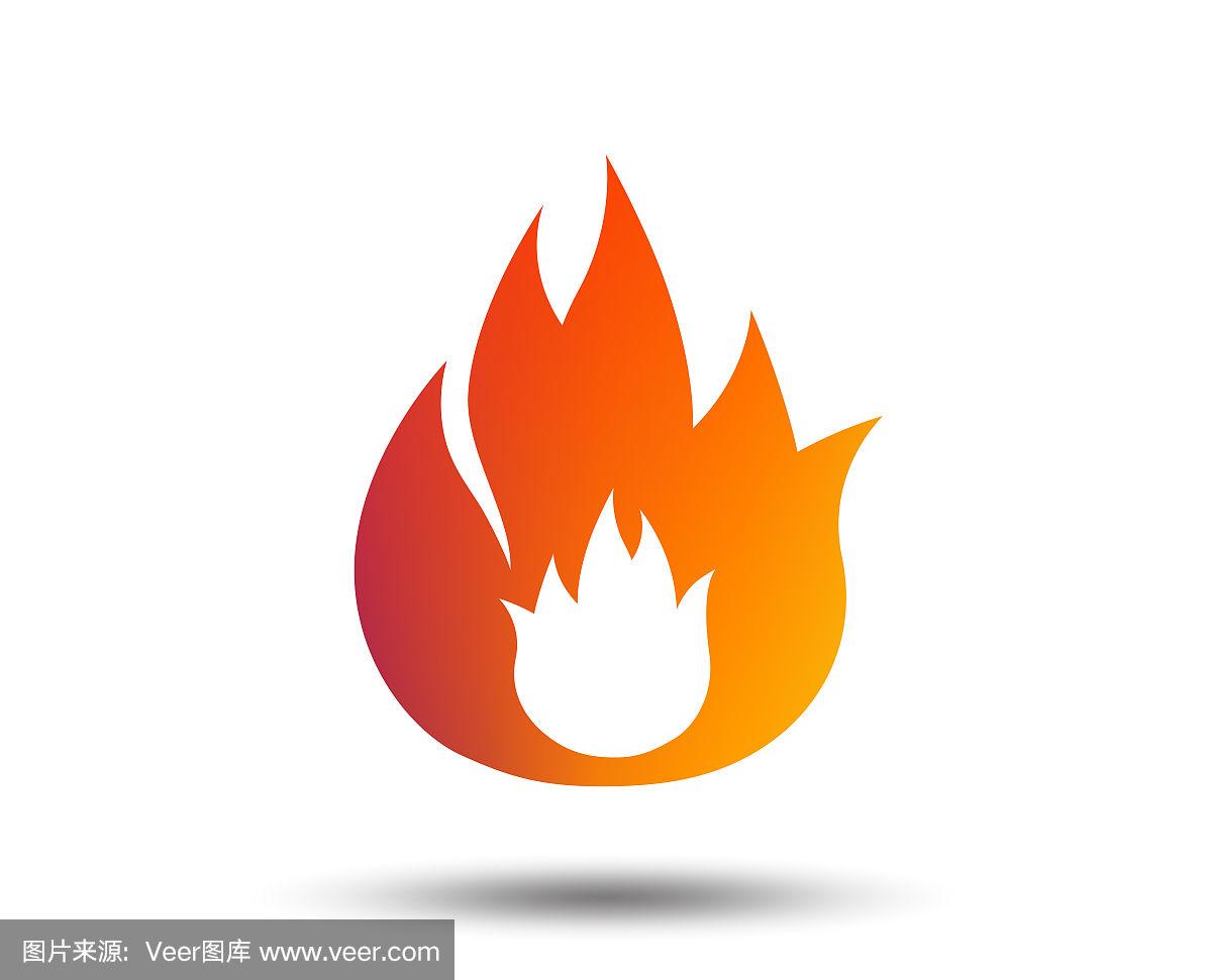 火灾火焰图标.火炽热的火焰矢量标志孤立在白色的背景