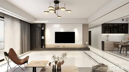 113平现代风格电视墙采用大理石电视机为嵌入式美观且大气