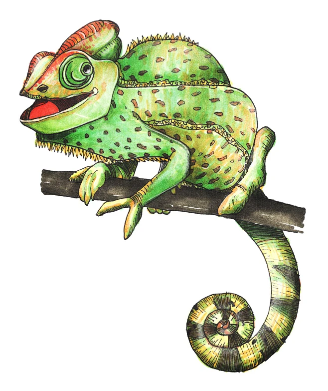 用马克笔搭配颜色注意颜色的渐变和叠加让变色龙更加有层次画出变色龙