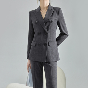 春秋新款灰色双排扣西装套装气质女神范名媛小西装外套商务正装女