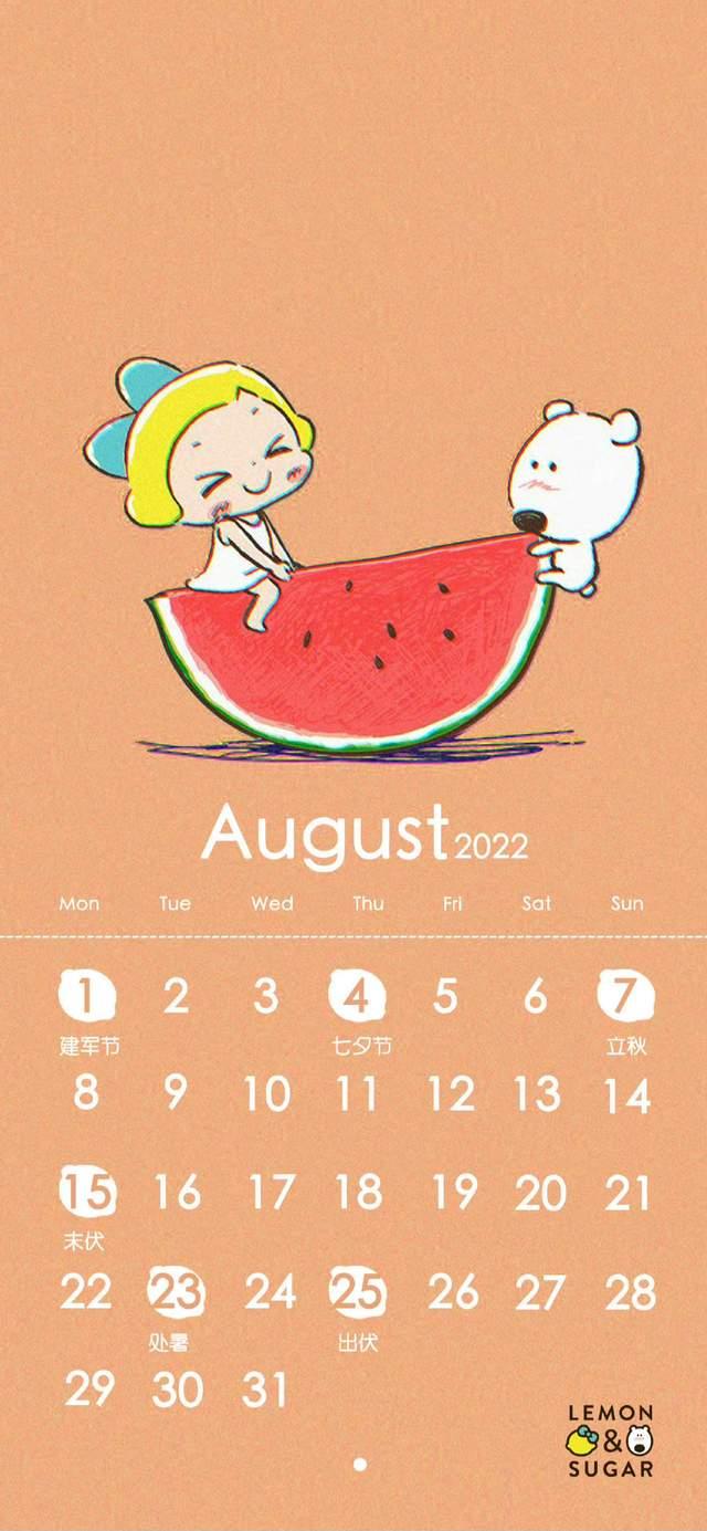 八月日历壁纸,希望八月好运,一切都顺意