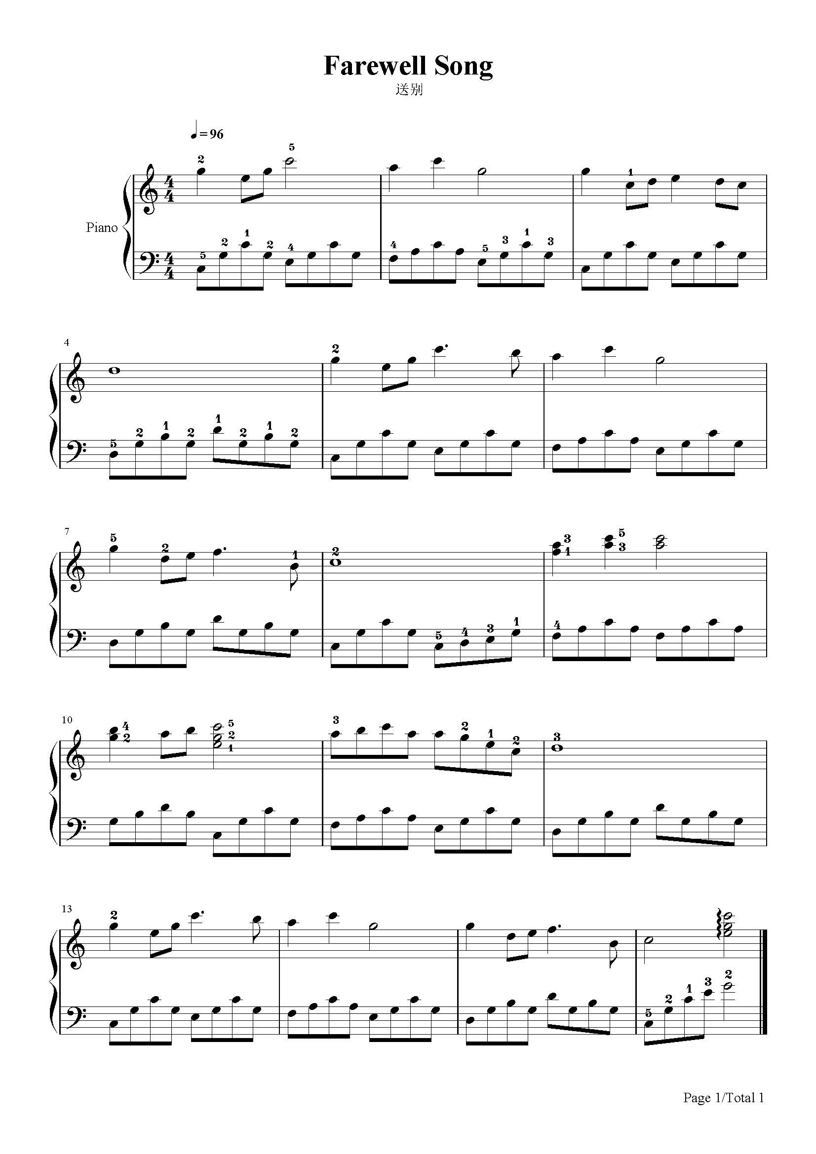 送别钢琴谱李叔同c调流行钢琴五线谱