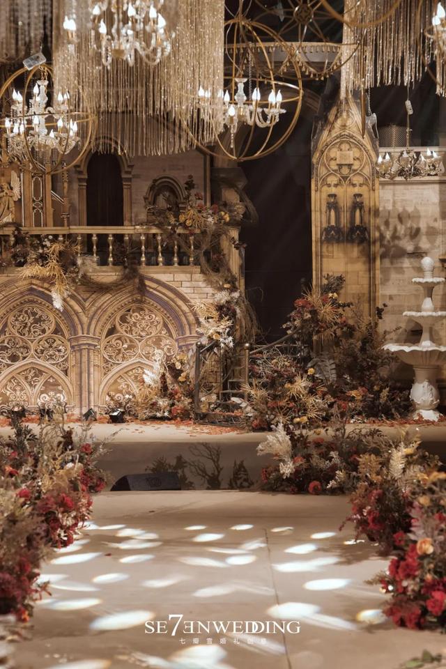 大气复古的欧式古堡婚礼,高贵典雅的金色现场