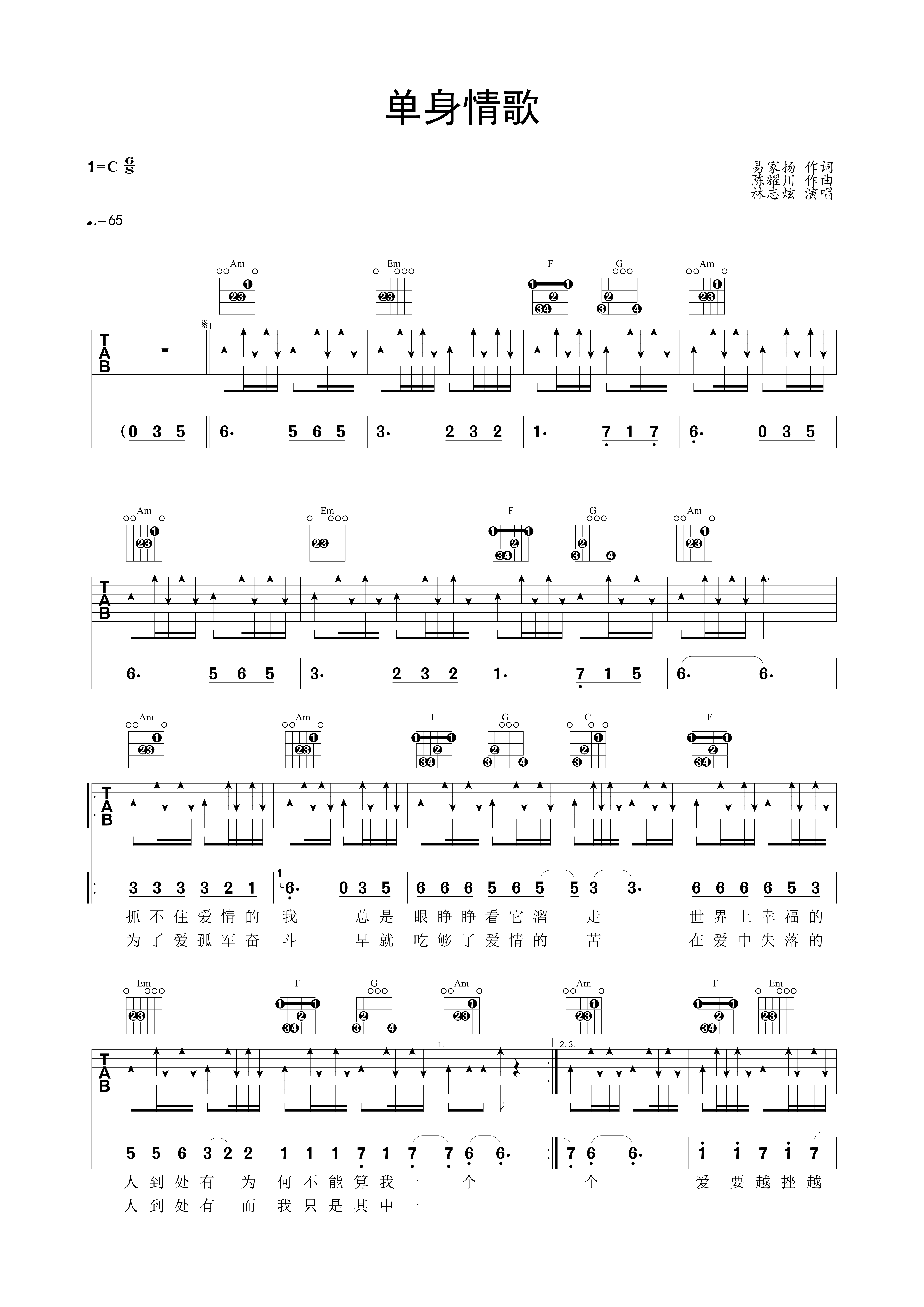 单身情歌_吉他谱_用户传谱 | 搜谱——打造全国最大的歌谱搜索引擎