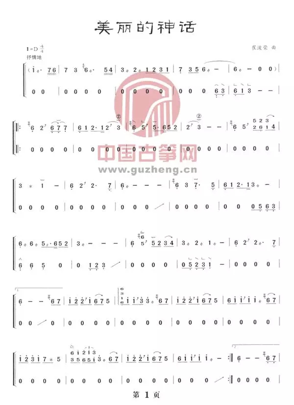 美丽的神话古筝谱-崔浚荣古筝谱-古筝曲谱-中国古筝网