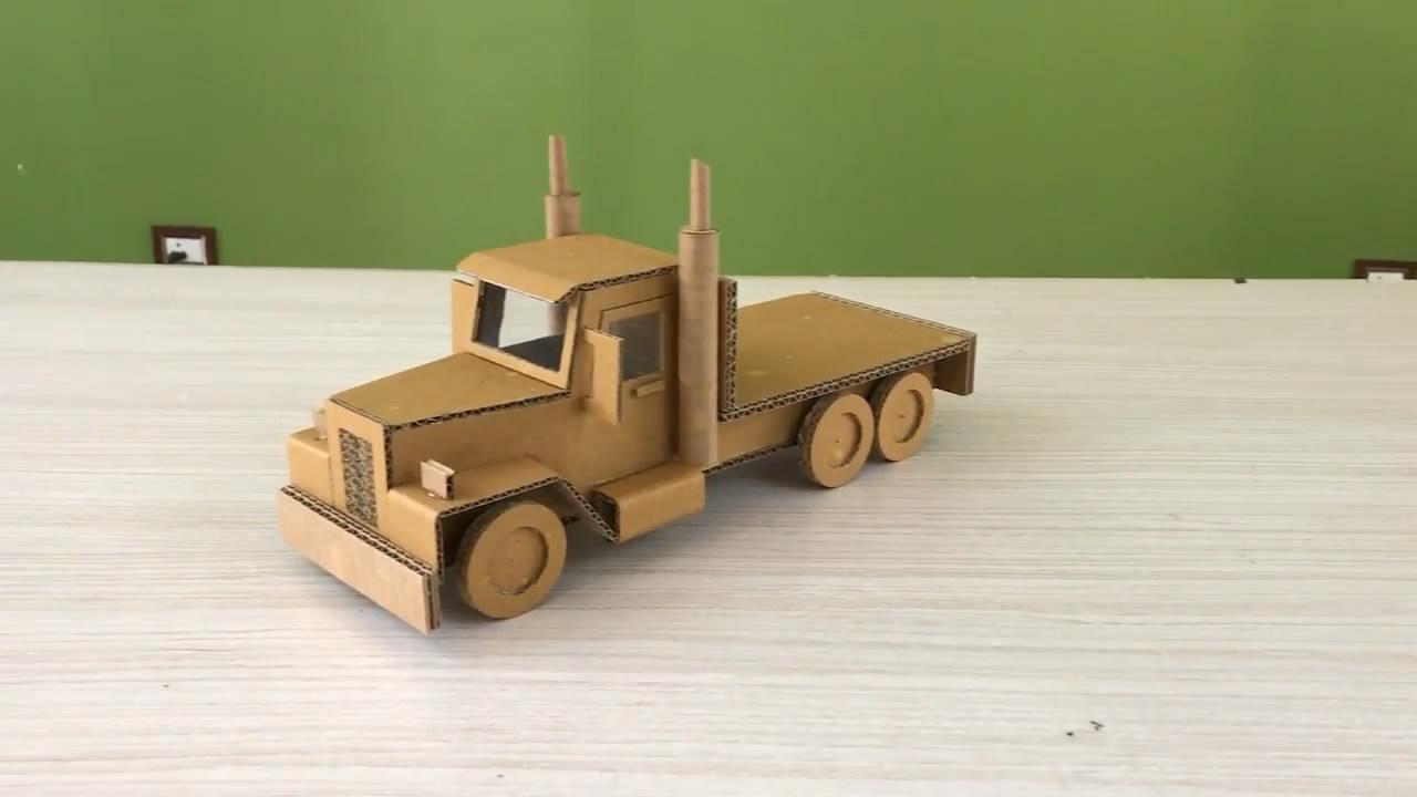 「创意纸板diy」带你学习如何制作集装箱卡车模型的方法!