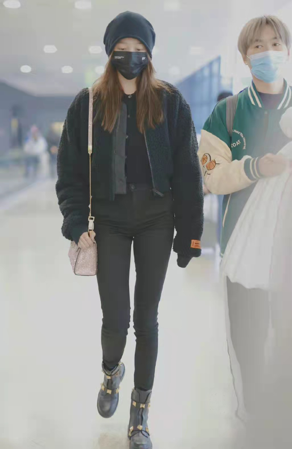 关晓彤穿皮衣配牛仔裤,不露腿完全不显身材,网友:像举铁大汉!