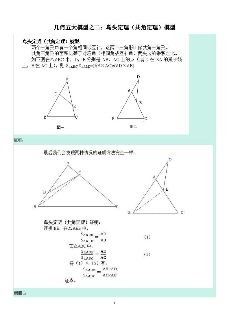 几何五大模型之二:鸟头定理(共角定理)模型.doc