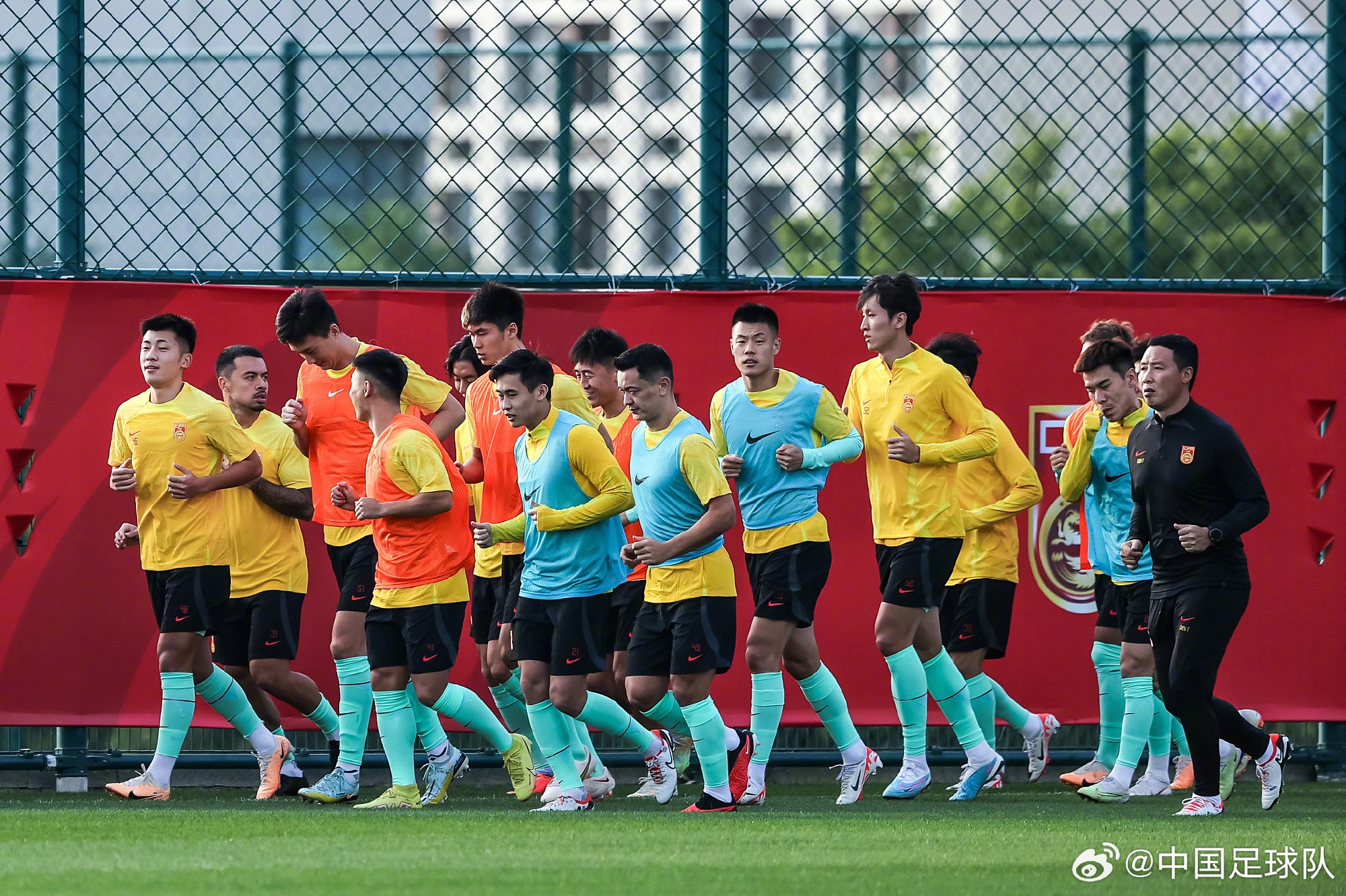 27日下午,中国国家男子足球队继续进行场地训练 图据中国足球队微博