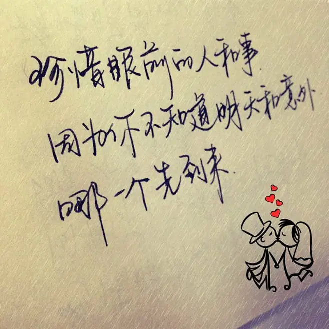 唯美手写文字:珍惜眼前的人和事,因为你不知道明天和意外,哪个先到来.