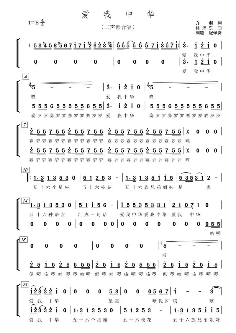 爱我中华 二声部合唱谱【刘聪 钢琴伴奏谱 五线谱 正谱 声乐 - 抖音