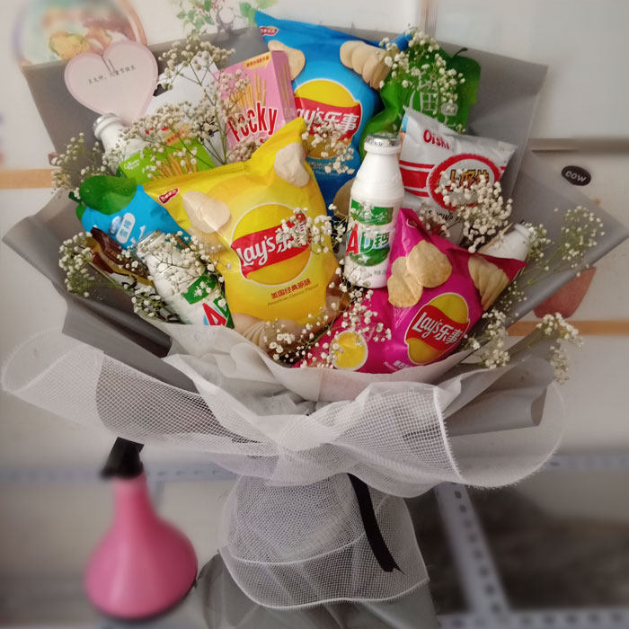 花束网红零食棒棒糖养乐多成品鲜花速递同城毕业创意鲜花速递同城