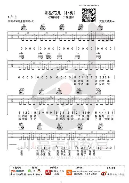朴树《那些花儿》吉他谱-弹唱谱简单版吉他教学视频-小磊吉他
