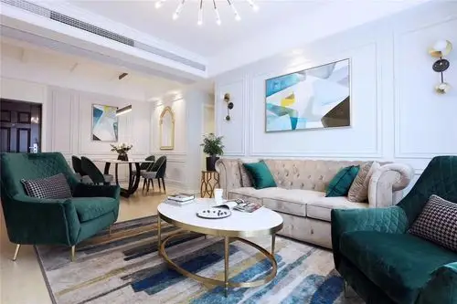 客厅沙发装修效果图轻奢46平美式复式装修案例