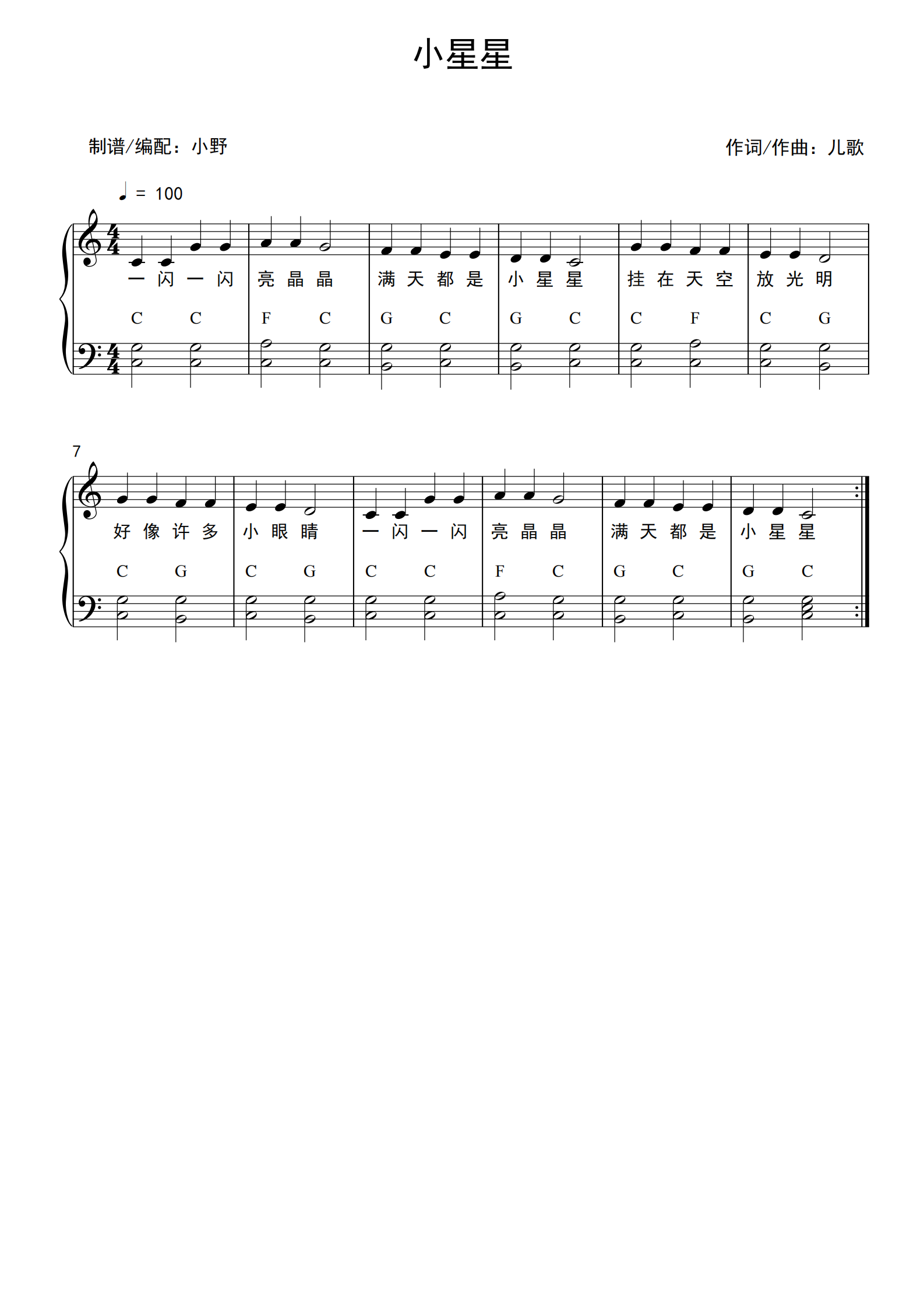 《小星星(儿童钢琴小弹唱)》钢琴谱