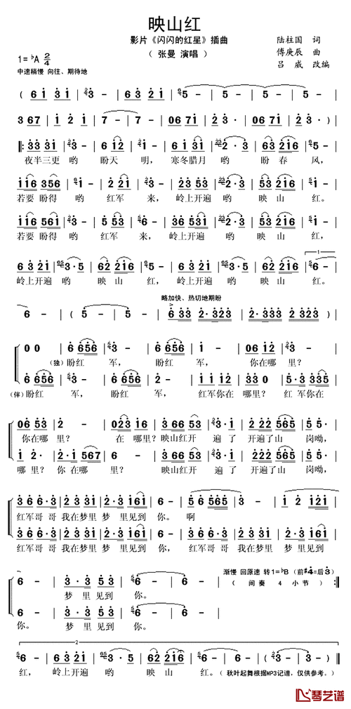 映山红简谱(歌词)-张曼演唱-秋叶起舞记谱上传1