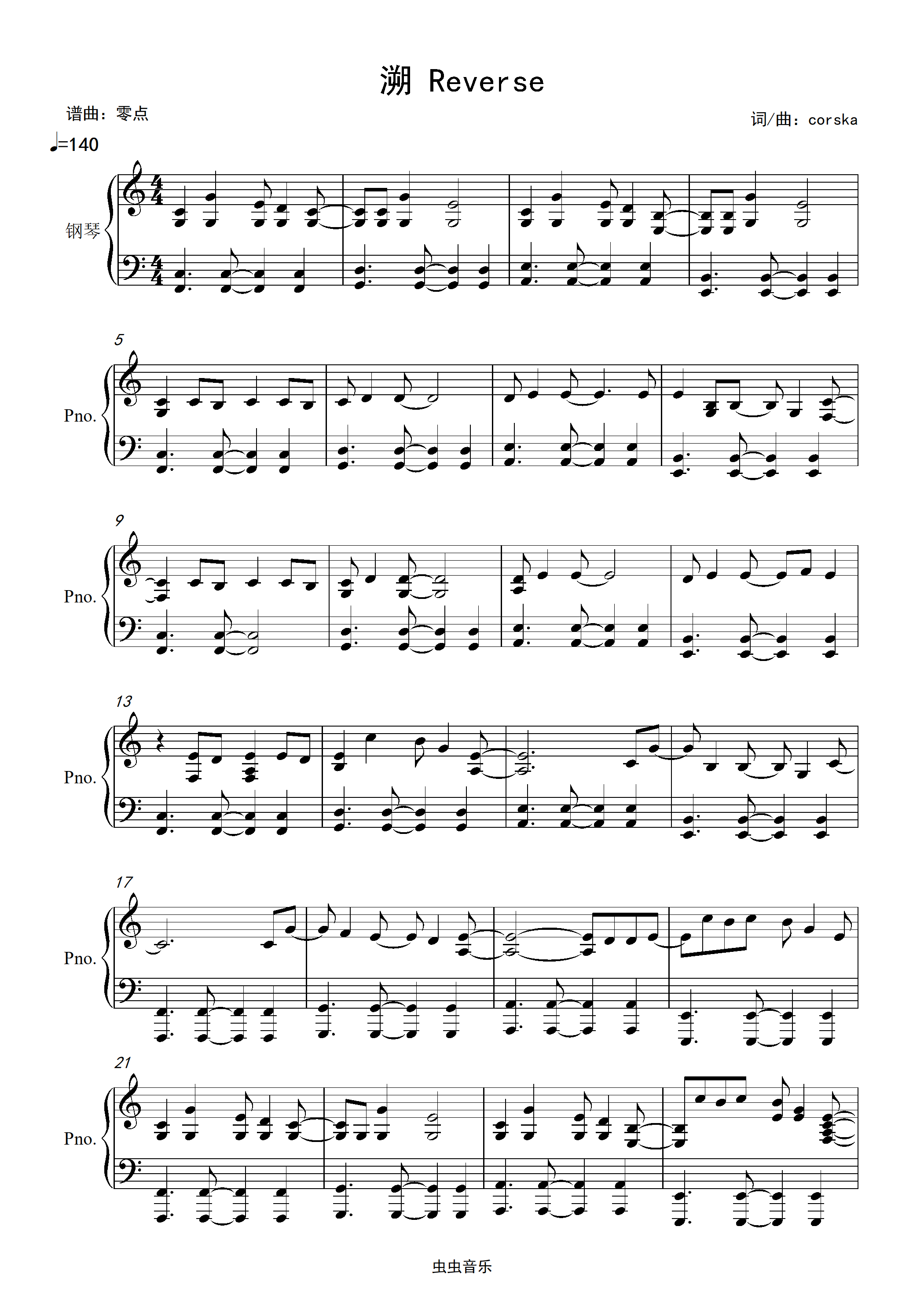 溯(reverse)feat.马吟吟-c调简单易上手钢琴谱-虫虫钢琴