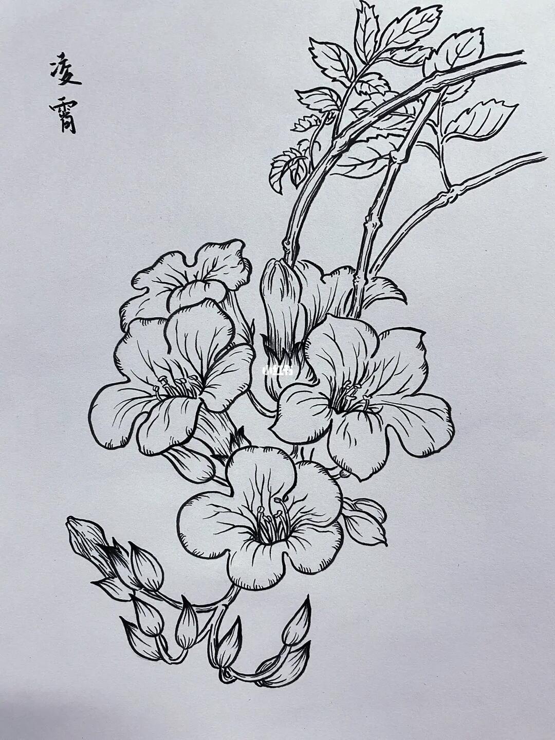 绘画练习线描花卉之凌霄花临摹附过程