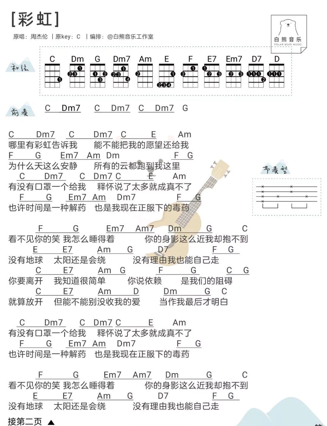 彩虹尤克里里谱弹唱版原调精选版白熊音乐编配周杰伦
