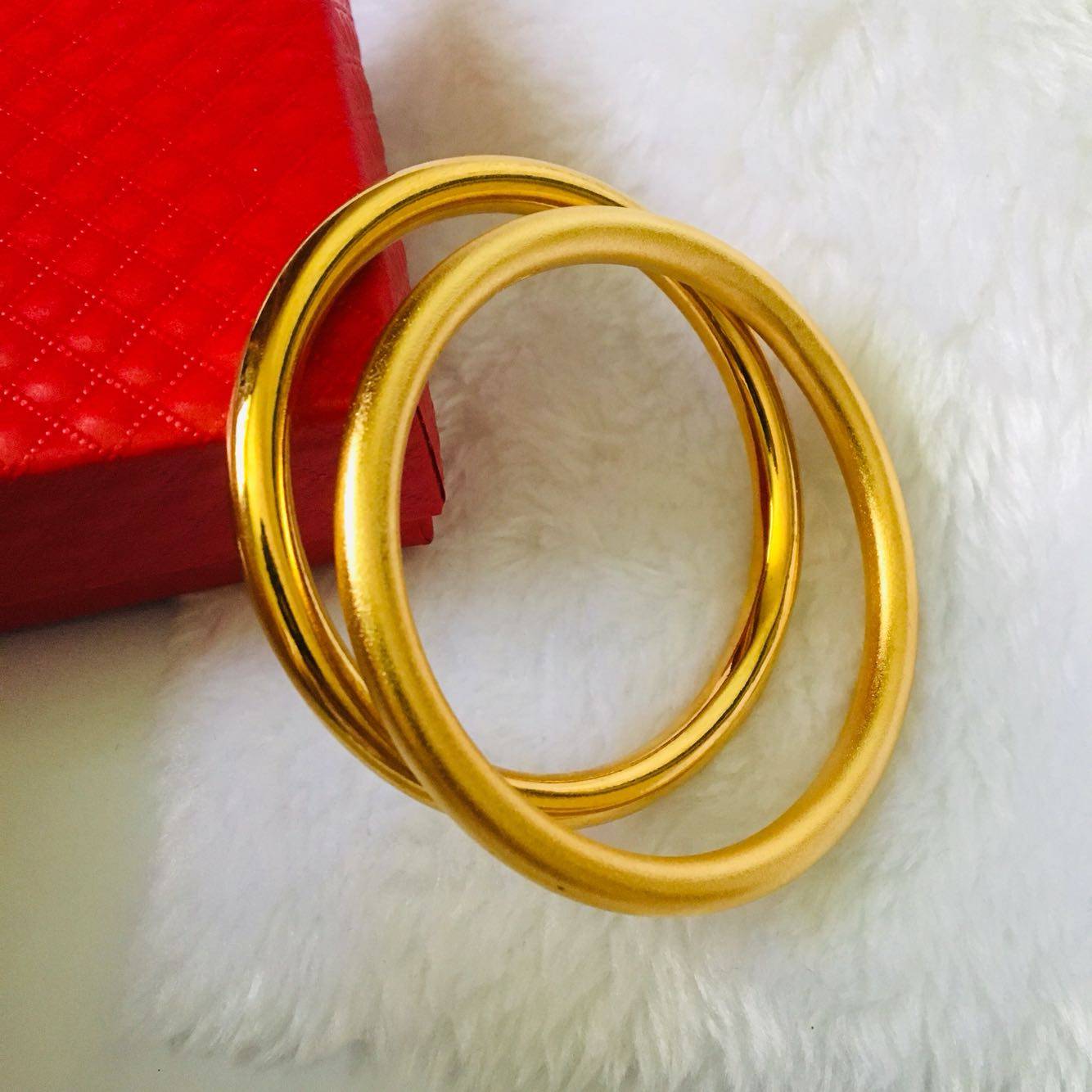 福禄虎沙金手镯越南沙金手镯女古法工艺实心磨砂仿感不掉色潮定制款