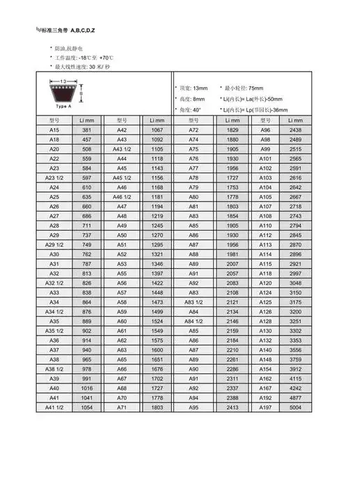 标准三角带同步带尺寸表