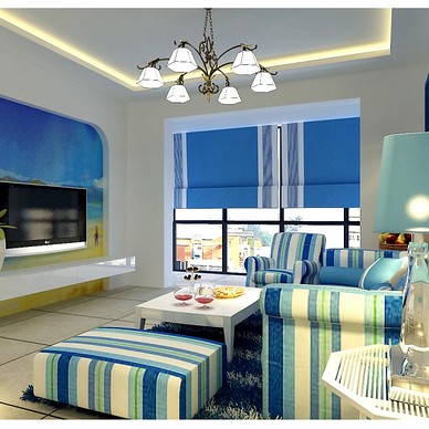 20㎡精选地中海风格客厅,蓝色小清新的电视背景墙样板
