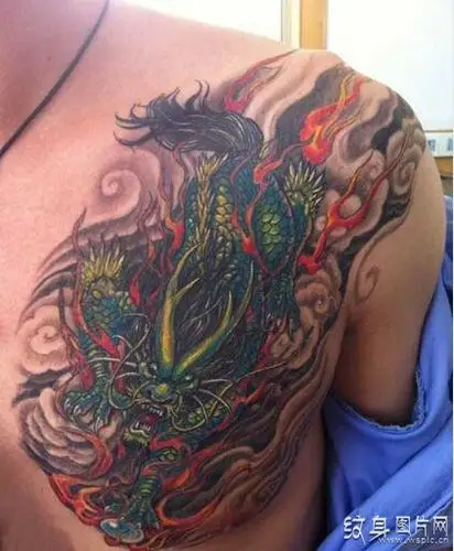 神龙降临肩部刺青图案tag标签:肩部龙男士经典披肩龙纹身tag标签:男士