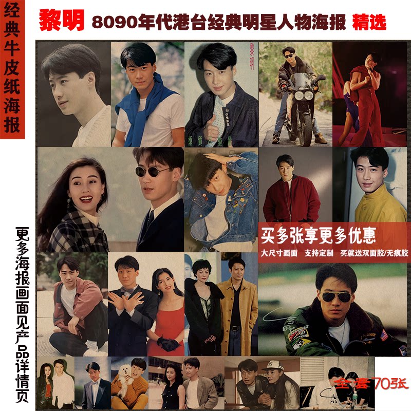 黎明 8090年代四大天王港台明星经典牛皮纸海报复古怀旧壁画墙画