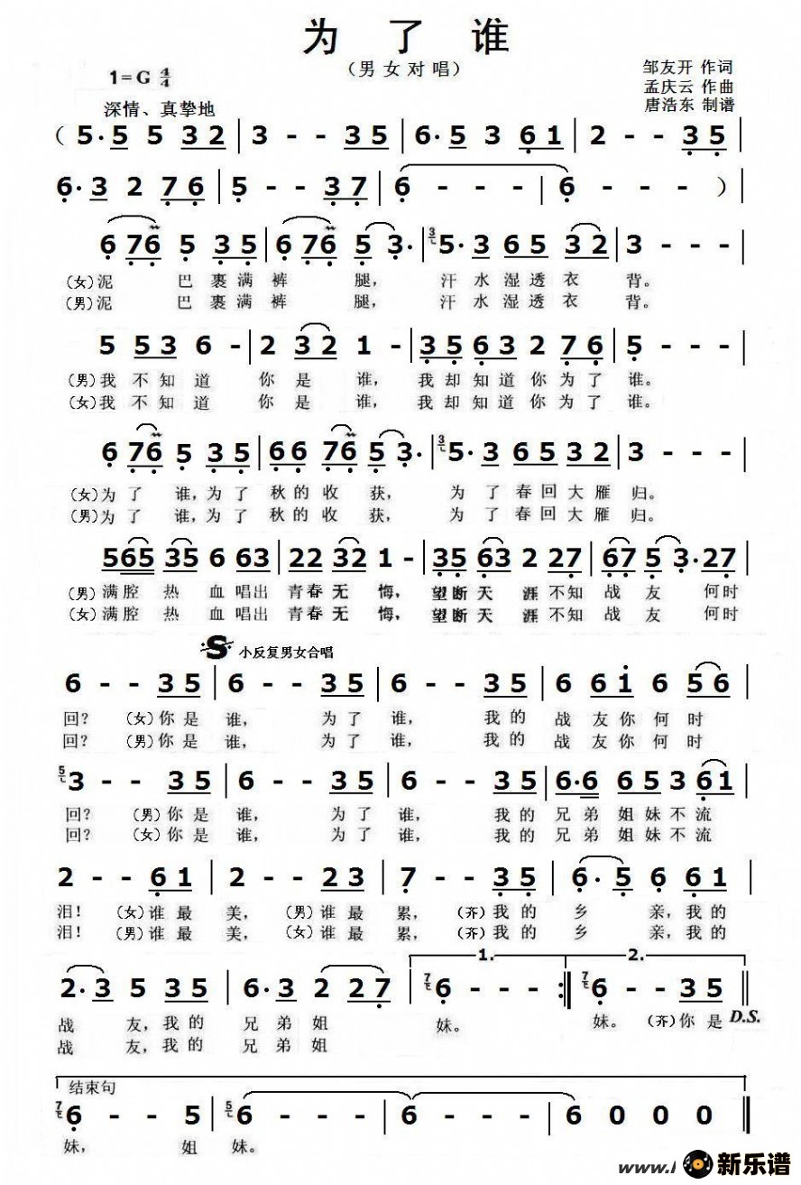 歌曲为了谁简谱_歌曲简谱