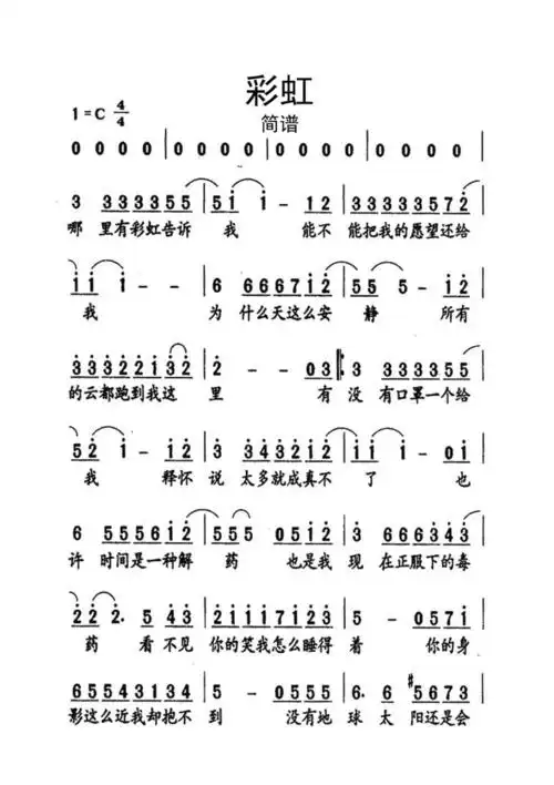 彩虹 周杰伦 歌谱,吉他谱 和弦谱,简谱