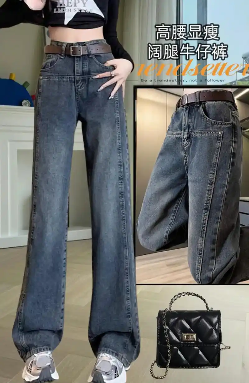 王家有鱼浅色牛仔裤女夏季薄款2024新款高腰显瘦复古宽松阔腿长裤!