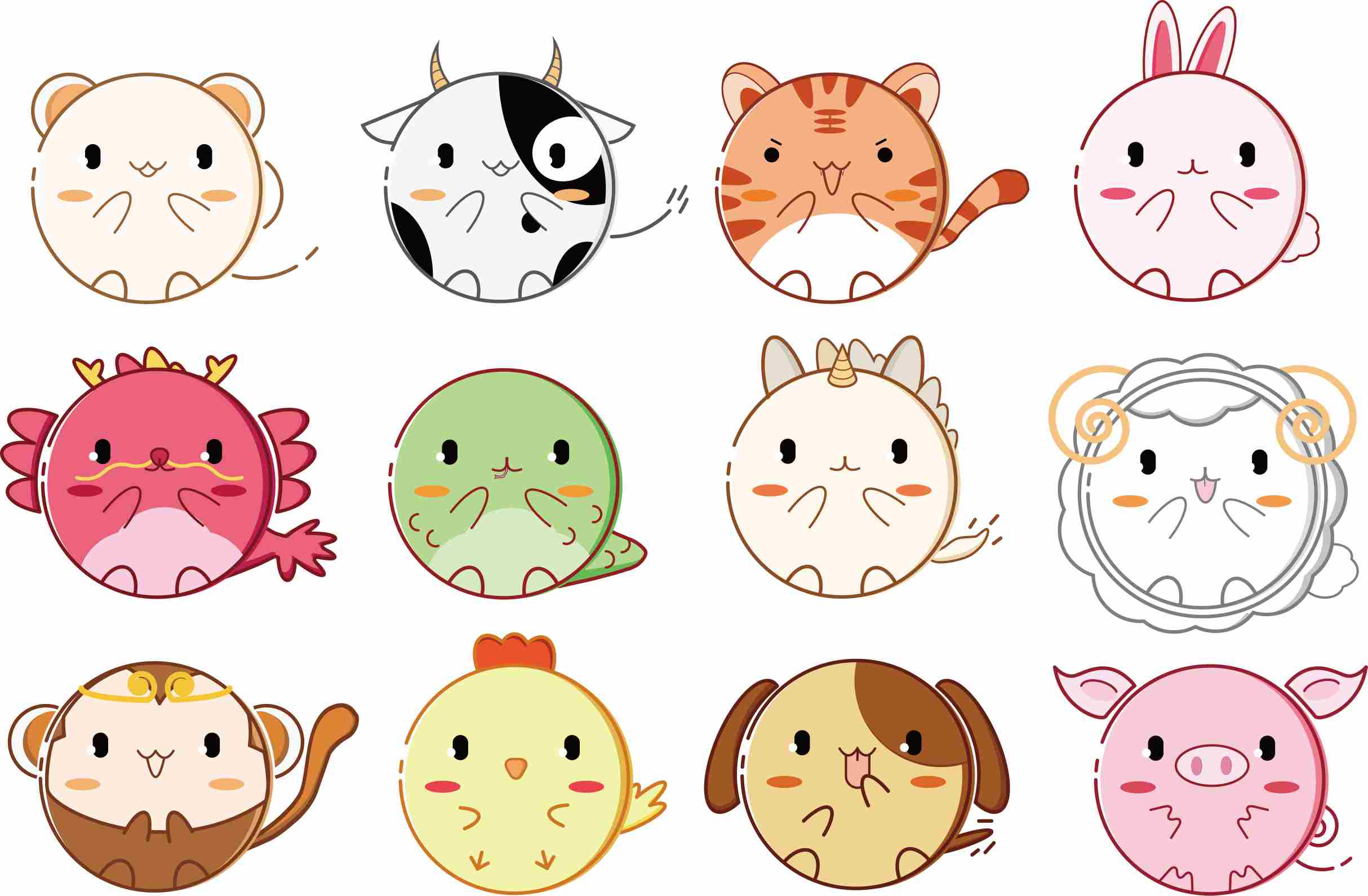 卡通十二生肖矢量图片-卡通十二生肖矢量素材下载-众图网