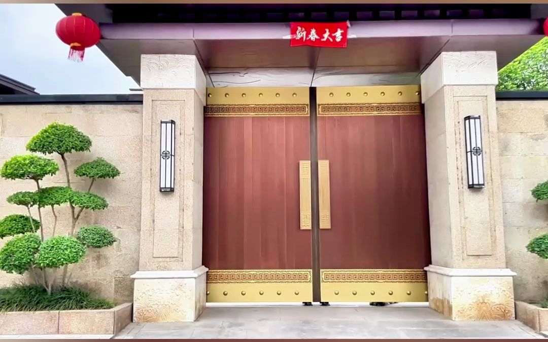 别墅大门,铜门搭配门楼真高档大气#西安农村自建房 #铜门 #别墅设计