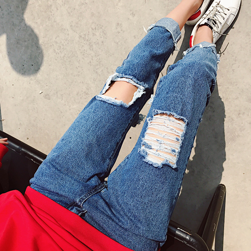 时尚破洞牛仔裤女
