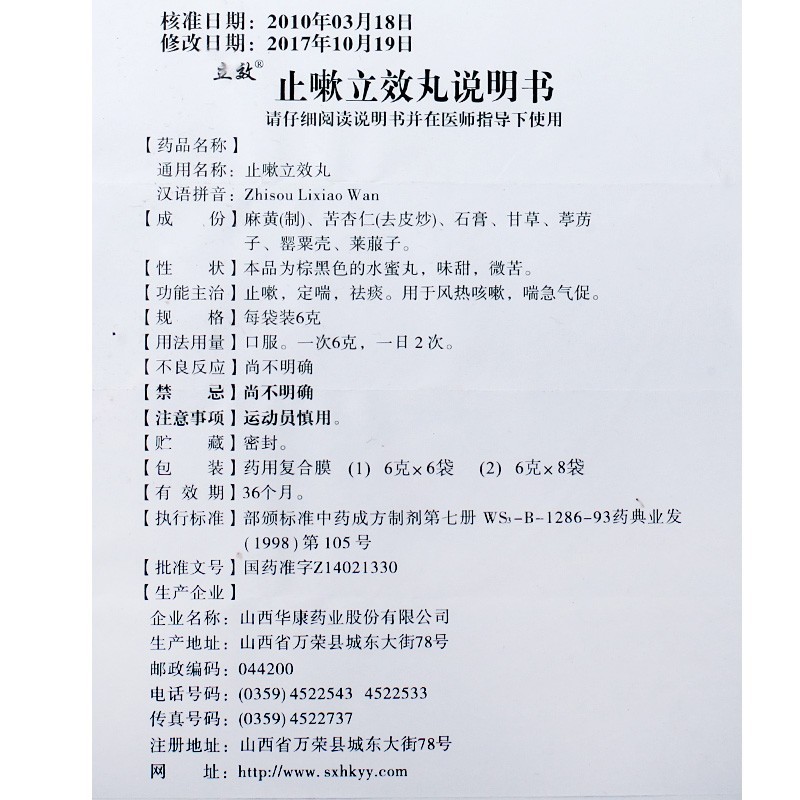 【止嗽立效丸6g*6袋/盒】价格_功效与作用_说明书_买药就上药房网