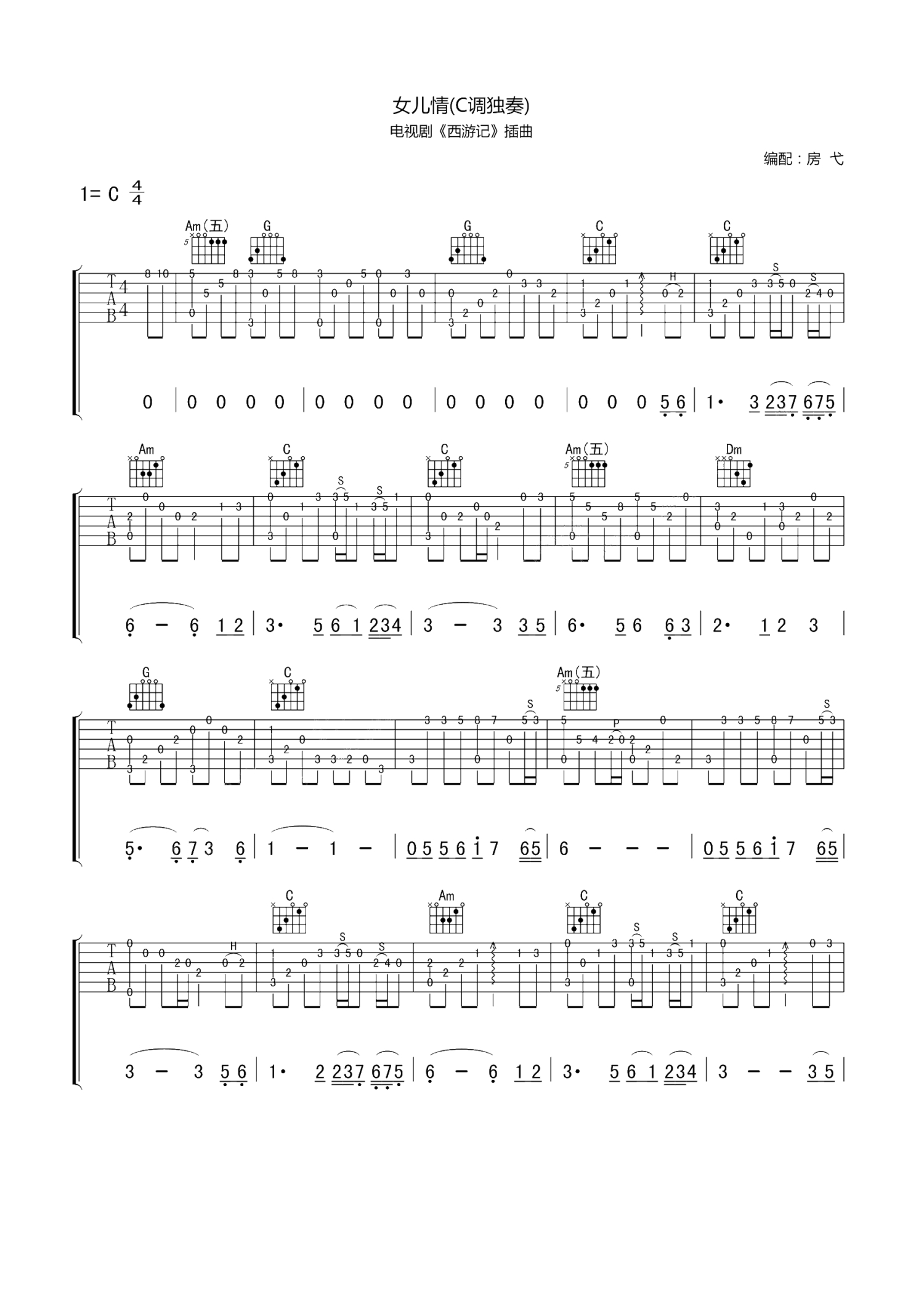 女儿情吉他谱C调