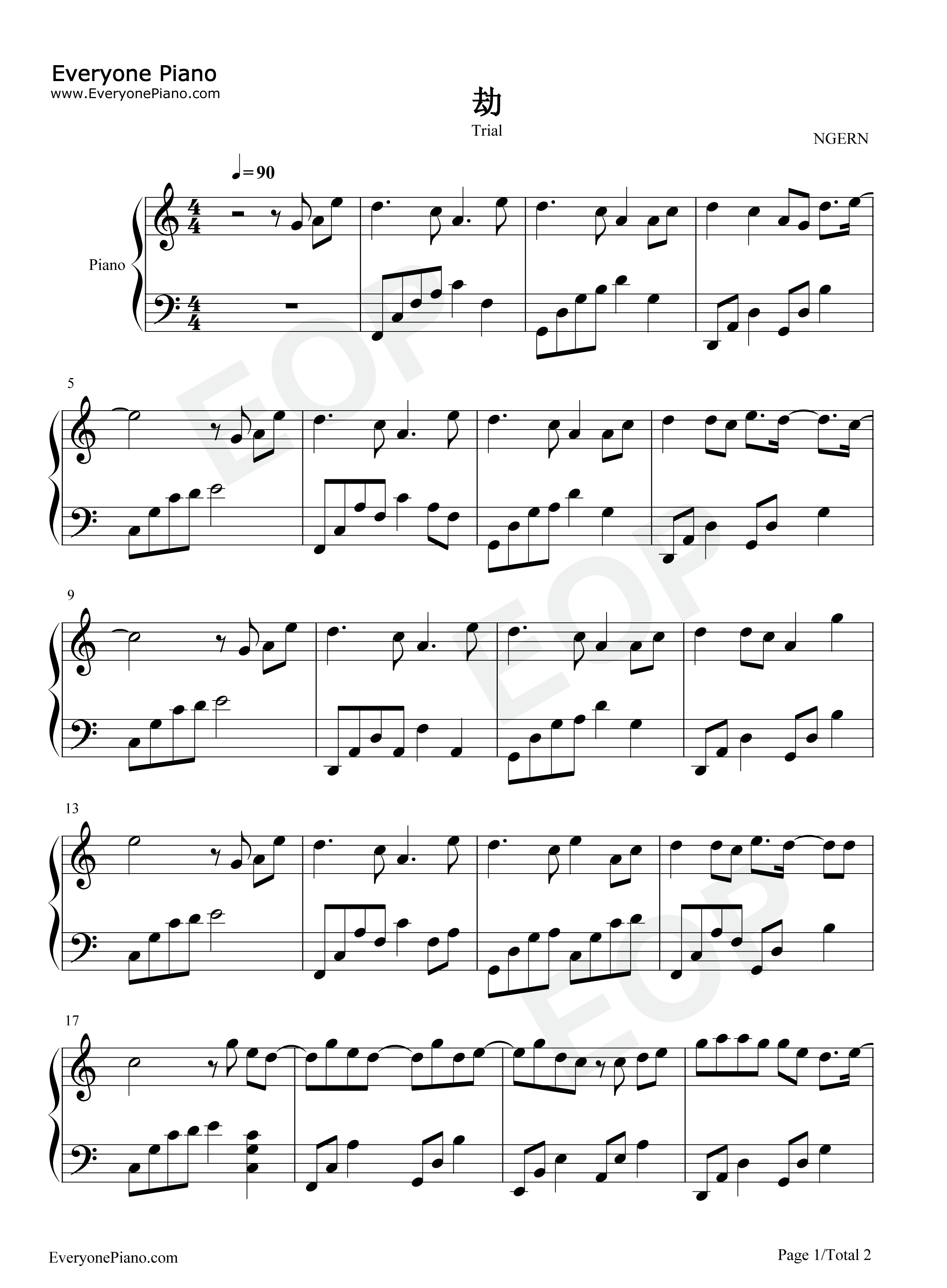 劫-c调简单版-琉璃ost五线谱预览1-钢琴谱文件(五线谱,双手简谱,数字